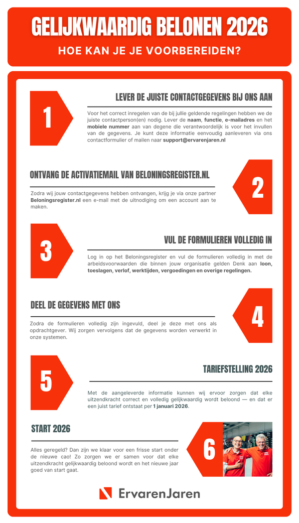 Met de aangeleverde informatie kunnen wij ervoor zorgen dat elke uitzendkracht correct en volledig gelijkwaardig wordt beloond en dat er een juist uitzendtarief ontstaat per 1 januari 2026.